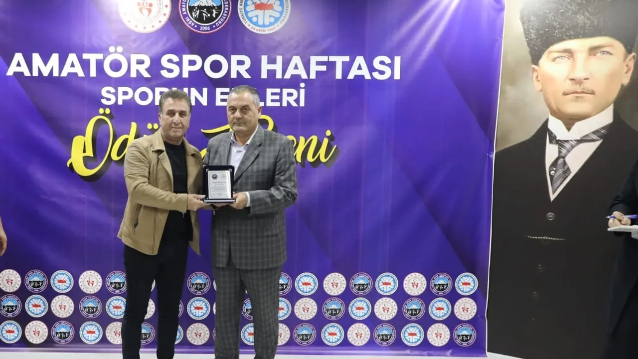 Amatör spora hizmet eden ve destek veren yerel basın ödülünü, Orta Doğu Gazeteciler Cemiyeti Başkanı ve İnternet Gazetecileri Federasyonu (İGF) Temsilcisi Nihat Aydın aldı. Aydın’a ödülünü Ağrı Kadın Futbol Takımı Antrenörü Önder Tunay takdim etti.AĞRI (İGFA) - Ağrı Amatör Spor Kulüpleri Federasyonu ile Ağrı Gençlik ve Spor İl Müdürlüğü tarafından ortak düzenlenen Amatör Spor Haftası’nın kapanış töreni ve “Ağrı’da Sporun Enleri” ödül töreninde 26 başarılı sporcu ve yönetici ödüllerini aldı. Gecede aynı zamanda amatör spora hizmet eden isimler de onurlandırıldı.