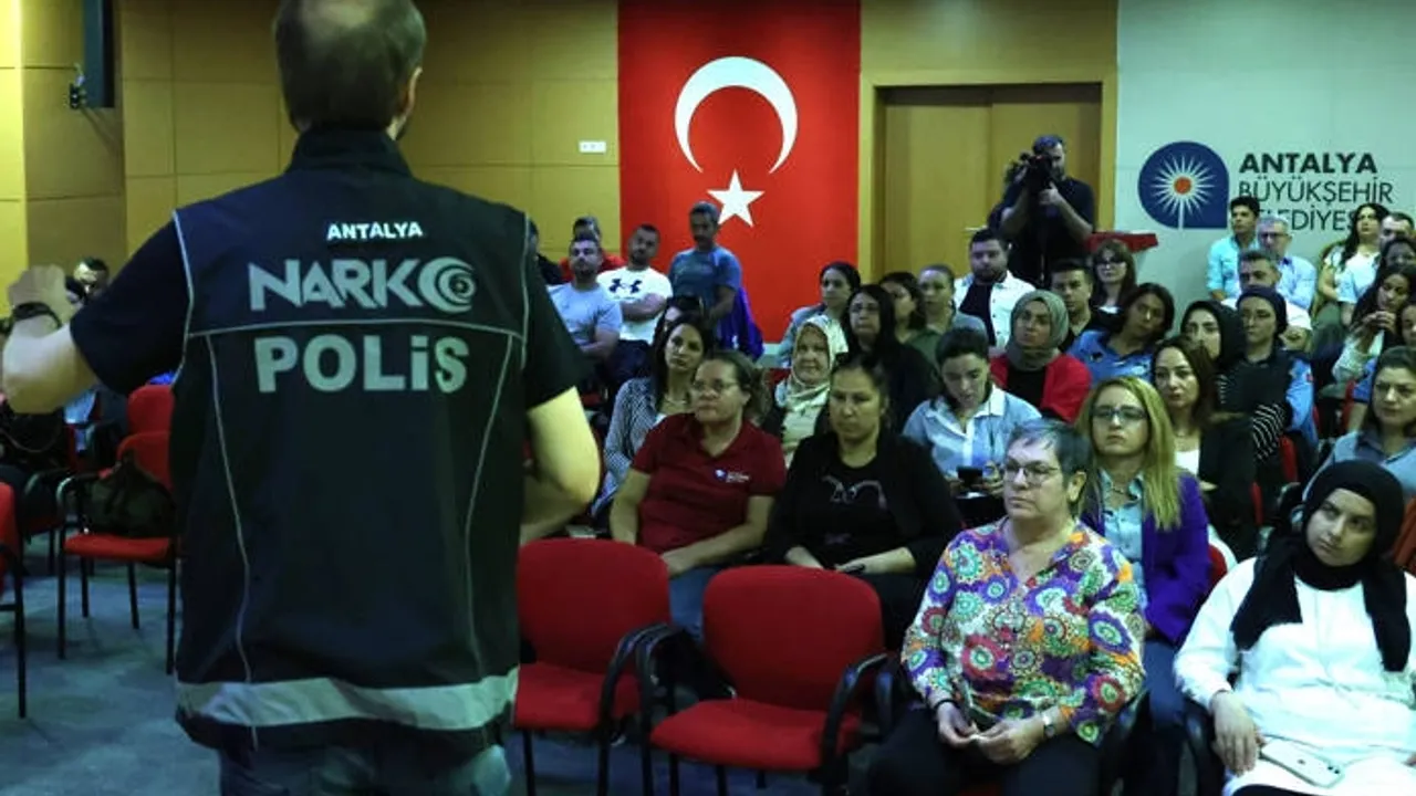 Antalya Büyükşehir Belediyesi, Antalya Narkotik Şube ile yaptığı ortak çalışmayla personeline madde bağımlılığı ile mücadele eğitimi verdi.ANTALYA (İGFA) - Bağımlılık yaşı giderek düşen, kullanan kişileri sosyolojik, fiziksel ve ekonomik olarak yıpratan uyuşturucu maddelerin mücadelesi ile ilgili farkındalık çalışması yapan Antalya Büyükşehir Belediyesi hizmet içi eğitimlerine devam ediyor. Antalya Narkotik Şube Müdürlüğü ile ortaklaşa yürütülen eğitim programında Büyükşehir çalışanlarına madde bağımlılığı ile mücadele eğitimi verildi.