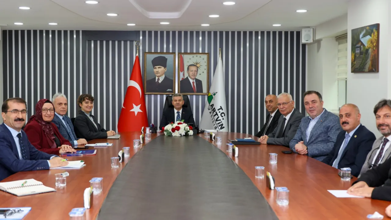 Artvin Valisi Turan Ergün başkanlığında 2025 yılı Ocak-Eylül dönemi İl İstihdam ve Mesleki Eğitim Kurulu toplantısı gerçekleştirildi.Bayram SARAYOĞLU / ARTVİN (İGFA) - İstihdam ve mesleki eğitim politikalarının oluşturulması, istihdamı koruyucu ve geliştirici stratejiler ile işsizliği önleyici tedbirlerin belirlenmesine yönelik çalışmalar yapmak için oluşturulan kurulun üyeleri, Valilik Toplantı Salonu'nda bir araya geldi.