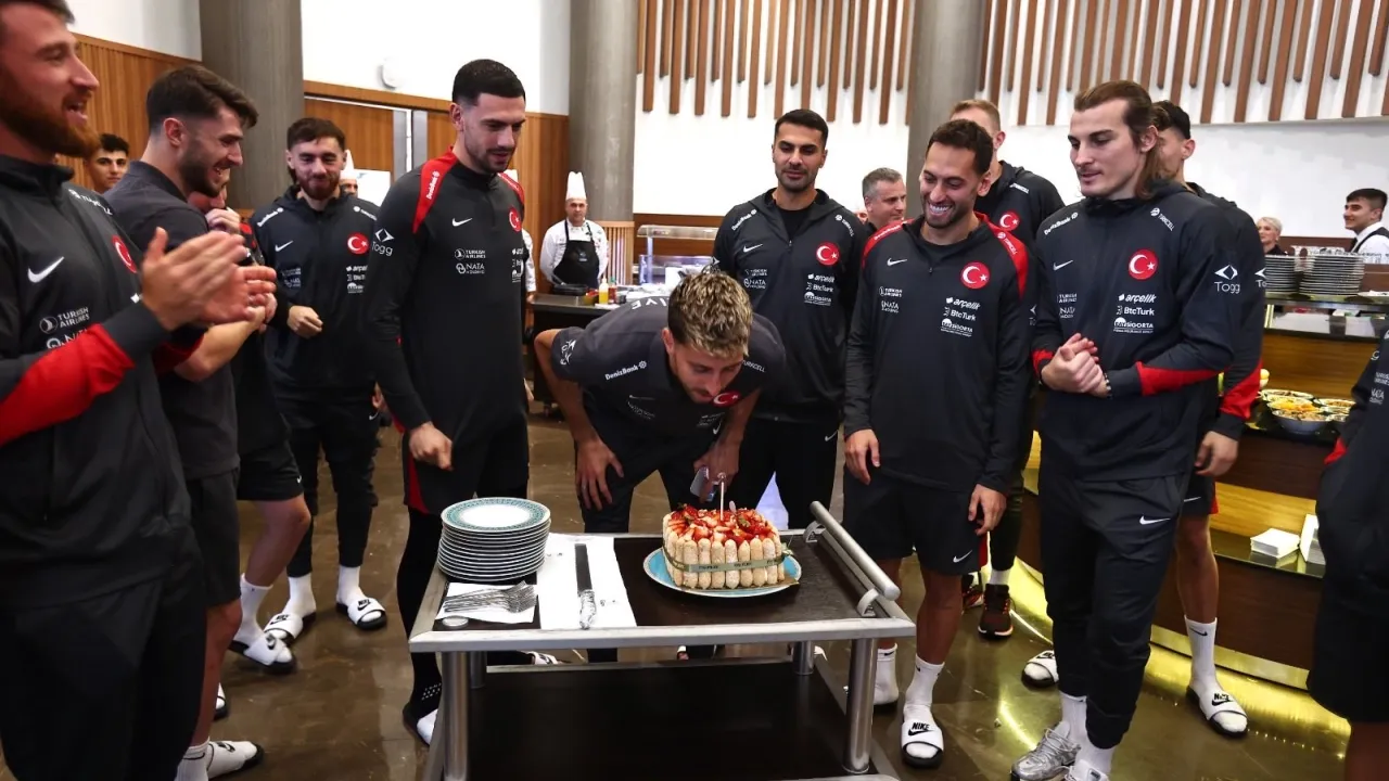 A Millî Takım’ın 2026 Dünya Kupası Avrupa Elemeleri için Riva’da kamp yaptığı sırada, aday kadroda yer alan oyuncumuz Atakan Karazor’un doğum günü coşkuyla kutlandı. Öğle yemeği sonrası hazırlanan pastayı kesen Atakan’a ilk dilimi kaptan Hakan Çalhanoğlu ikram etti.ANKARA (İGFA) - Türkiye Futbol Federasyonu’nun (TFF) sosyal medya paylaşımına göre, Atakan Karazor’un doğum günü kutlaması, Gürcistan maçı hazırlıklarının devam ettiği Riva’daki kampta gerçekleşti.
