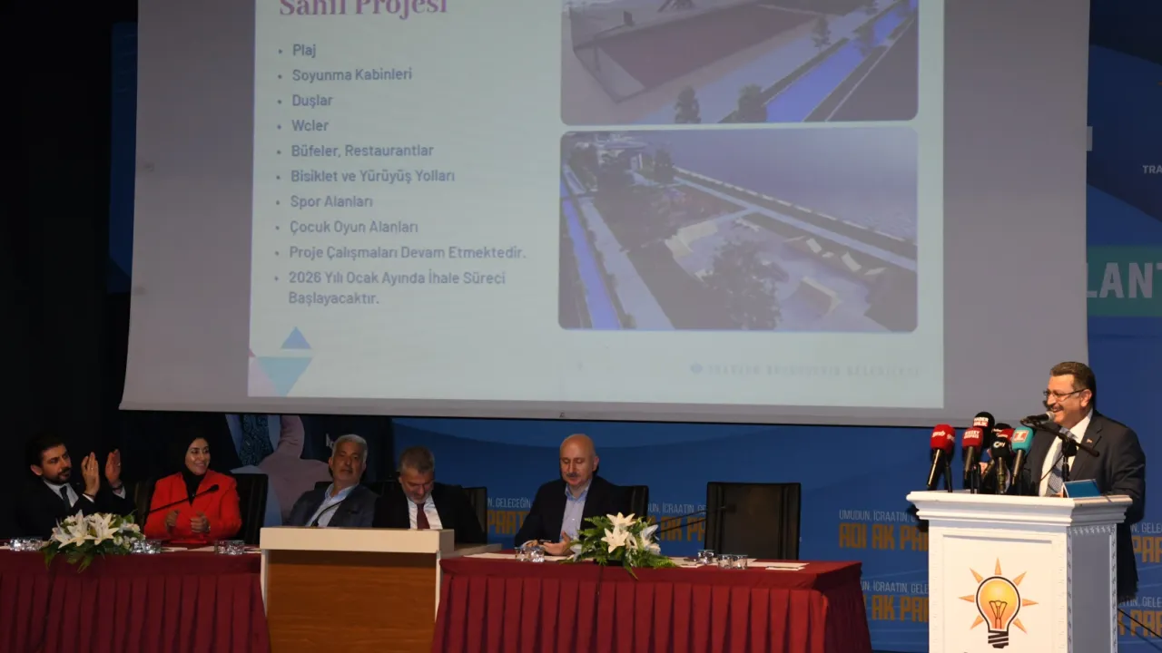 AK Parti Trabzon Yerel Yönetimler Daraltılmış İl Danışma Meclisi Toplantısı’na katılan Trabzon Büyükşehir Belediye Başkanı Ahmet Metin Genç, Pazarkapı dönüşümü, Uzunkum Yaşam Alanı, Boztepe Seyir Kulesi, Çömlekçi ve Arafilboyu dönüşümleri, raylı sistem ve elektrikli otobüs projeleri başta olmak üzere şehir merkezinde ve ilçelerde hayata geçirilen büyük yatırımları detaylarıyla aktardı.TRABZON (İGFA) - Trabzon Büyükşehir Belediye Başkanı Ahmet Metin Genç, AK Parti Trabzon Yerel Yönetimler Daraltılmış İl Danışma Meclisi Toplantısı’na katıldı. Hamamizade İhsan Bey Kültür ve Sanat Merkezi’nde gerçekleştirilen programda Trabzon Milletvekilleri Adil Karaismailoğlu ve Vehbi Koç, AK Parti Genel Merkez Trabzon İl Koordinatörü Hakan Karaduman, İl Başkanı Sezgin Mumcu, Kadın Kolları Başkanı Ayfer Cihan, Gençlik Kolları Başkanı Mahmut Çavuş, ilçe belediye başkanları, ilçe başkanları ve partililer yer aldı. Yaptığı konuşmada belediye yatırımları ve devam eden projeler hakkında bilgi veren Başkan Genç, “Büyükşehir Belediyesi olarak göreve geldiğimiz günden bu yana şehrimizin her köşesine dokunan projelere imza atıyoruz. Pazarkapı alanında yaptığımız dönüşümle Trabzon’a yeni bir vizyon kazandırdık. Camimiz, çevresindeki düzenlemelerimiz ve yaşam alanımızla bu bölgeye 237 milyon liralık yatırım yaptık. Uzunkum Yaşam Alanı projemizi de Kasım ayında ihaleye çıkarıyoruz. 250 dönümlük ve 2 milyar lira değerindeki bu dev proje, 2027’de tamamlandığında Trabzon’a bambaşka bir soluk getirecek” dedi.