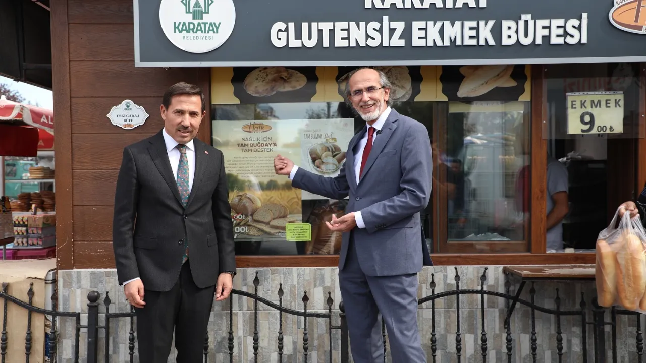 Konya'da Karatay Belediye Başkanı Hasan Kılca, Lokman Hekim Üniversitesi Rektörü Prof. Dr. Fatih Gültekin’i belediyede misafir ederek, glütensiz ekmek ve tam buğday ekmeği üzerine yürüttükleri çalışmaları paylaştı.KONYA (İGFA) - Konya'da Karatay Belediyesi’nin destek verdiği tam buğday ekmeği kampanyası ile glütensiz ekmek uygulamaları kısa sürede önemli bir başarı sağladı.