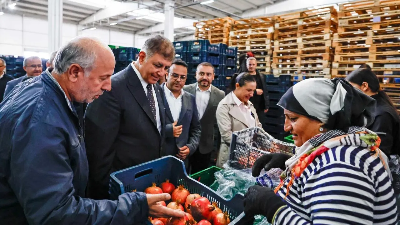 İzmir Büyükşehir Belediye Başkanı Dr. Cemil Tugay, Selçuklu çiftçilerle nar hasadı yaptı. Zeytinköy’de düzenlenen hasatta çiftçilerin taleplerini dinleyen Başkan Tugay, nar hasadının ardından mahsulün dünyaya açıldığı Deppo Efes’i ziyaret etti.İZMİR (İGFA) - Dünya nar ihracatında ilk 10 içerisinde yer alan İzmirli üreticiler hasat yaptı. İzmir Büyükşehir Belediye Başkanı Dr. Cemil Tugay, Selçuk’ta gelenekselleşen nar hasadında çiftçilerin bereketine ortak oldu. Selçuk’un Zeytinköy Mahallesi’nde düzenlenen nar hasadında Başkan Dr. Cemil Tugay’a Efes Selçuk Belediye Başkanı Filiz Ceritoğlu Sengel, İzmir Büyükşehir Belediyesi Genel Sekreter Yardımcısı İsmail Mutaf ve Büyükşehir bürokratları, Selçuk Belediyesi yöneticileri, meclis üyeleri, muhtarlar, kooperatif başkanları ve çok sayıda çiftçi eşlik etti.