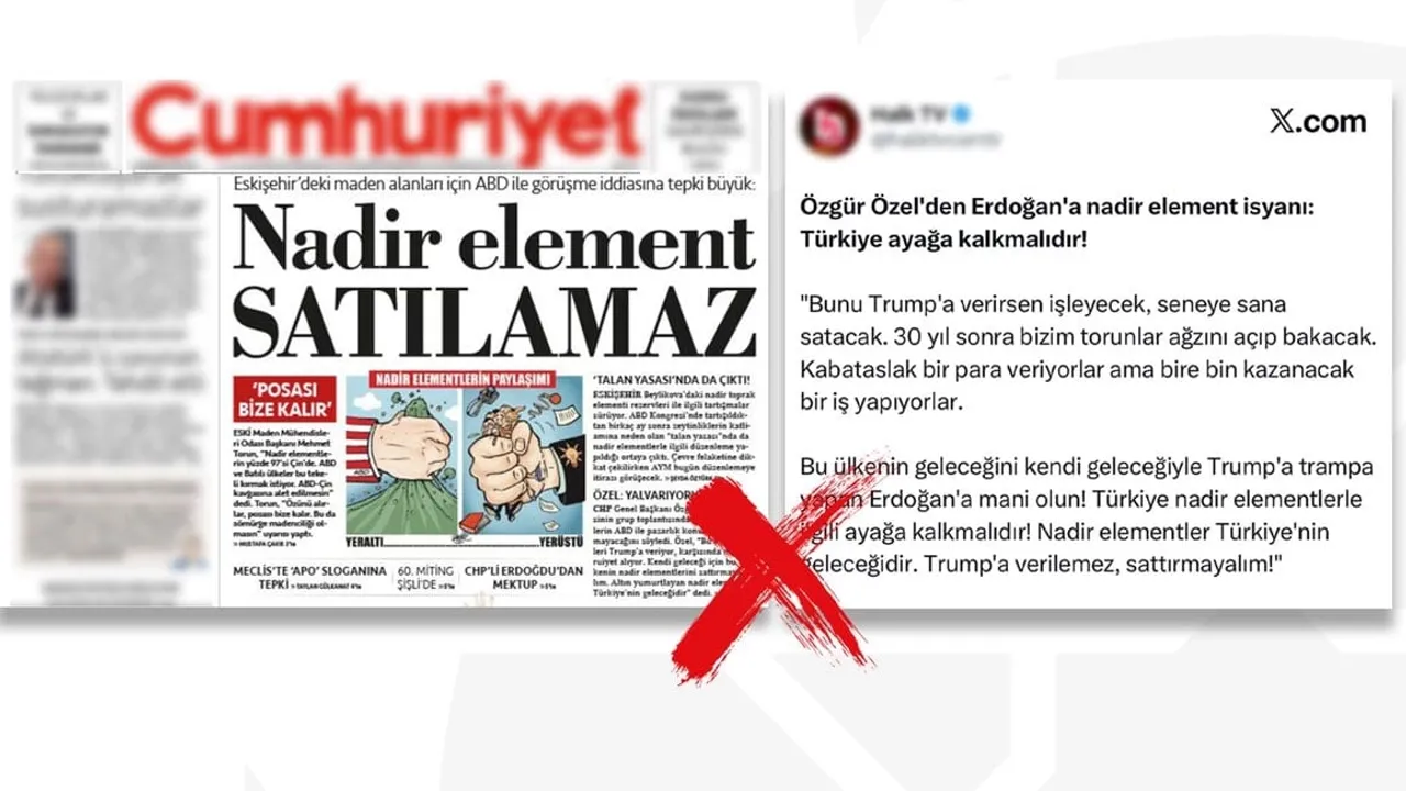 Eskişehir’deki Nadir Toprak Elementleri sahasının ABD’ye devredileceği yönündeki iddialar gerçeği yansıtmıyor. Cumhurbaşkanlığı İletişim Başkanlığı, “manipülatif ve yönlendirme amaçlı” bu paylaşımlara itibar edilmemesi uyarısında bulundu.ANKARA (İGFA) - Türkiye'nin en stratejik maden keşiflerinden biri olan Eskişehir Beylikova’daki Nadir Toprak Elementleri (NTE) sahasına ilişkin çıkan "ABD’ye devredildi" iddialarına resmi yalanlama geldi.