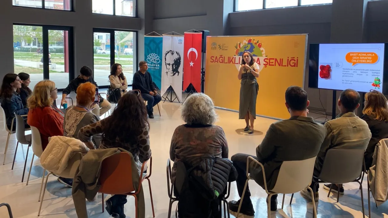 Bursa'da Nilüfer’de düzenlenen etkinlikte, gıda güvenliği ve tüketici bilinçlenmesi konuları masaya yatırıldı.BURSA (İGFA) - Nilüfer Belediyesi ve Gıda Mühendisleri Odası iş birliğiyle düzenlenen “Gıda Etiketi Okuryazarlığı Söyleşisi”nde konuşan Gıda Mühendisi Sibel Tokat, “En basitinden ülkemizde bir yılda israf edilen ekmekle 500 okul yapılabiliyor. Gıdanın çöpe gitmemesi için elimizden geleni yapmalıyız” dedi.