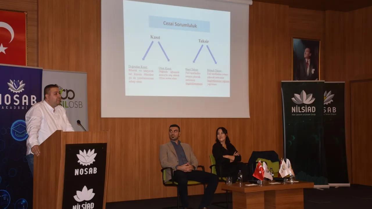 Bursa Nilüfer Organize Sanayi Bölgesi (NOSAB) Akademi etkinlikleri kapsamında, NOSAB’ta faaliyet gösteren firmaların temsilcilerine yönelik olarak ‘İş kazalarında çalışan ve işveren sorumlulukları’ konulu bir panel düzenlendi.BURSA (İGFA) - NOSAB Yönetim binası çok amaçlı toplantı salonunda gerçekleştirilen panele Makine Mühendisi – A Sınıfı İş Güvenliği Uzmanı Ercan Kocaada, Avukat – Uzman Arabulucu ve İş Sağlığı ve Güvenliği Teknikeri Elif Türk ve Yüksek Maden Mühendisi – Öğretim Görevlisi ve A Sınıfı İş Güvenliği Uzmanı Tunay Özbudak konuşmacı olarak katıldı.