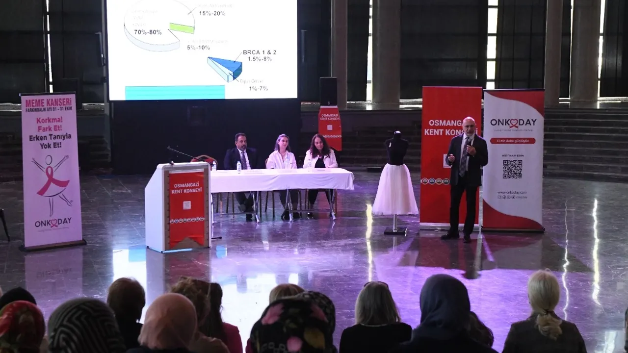 Bursa'da Osmangazi Kent Konseyi, her yıl 1-31 Ekim tarihleri arasında gerçekleştirilen ‘Meme Kanseri Bilinçlendirme ve Farkındalık Ayı’ kapsamında Uludağ Onkoloji Dayanışma Derneği ile ‘2025 Onkoloji Farkındalık Etkinlikleri’ düzenledi. BURSA (İGFA) - Panorama 1326 Bursa Fetih Müzesi’nde gerçekleşen etkinliğe Osmangazi Belediye Başkan Yardımcısı Mutlu Esendemir’in yanı sıra Osmangazi Kent Konseyi Başkanı Fatma Çil Yılmaz, Uludağ Onkoloji Dayanışma Derneği Başkanı Füsun Önen ve çok sayıda kadın personel katılım gösterdi. Müzik dinletisiyle başlayan programda Uludağ Üniversitesi Tıbbi Onkoloji Bilim Dalı Başkanı Prof. Dr. Türkkan Evrensel, Genel Cerrah Operatör Dr. Coşkun Özer, Psikolog Gönül Hazneci ile Eğitim Hemşiresi Elif Pişkin ise erken teşhisin önemine dikkat çekerek kadınlara hayati bilgiler verdi.
