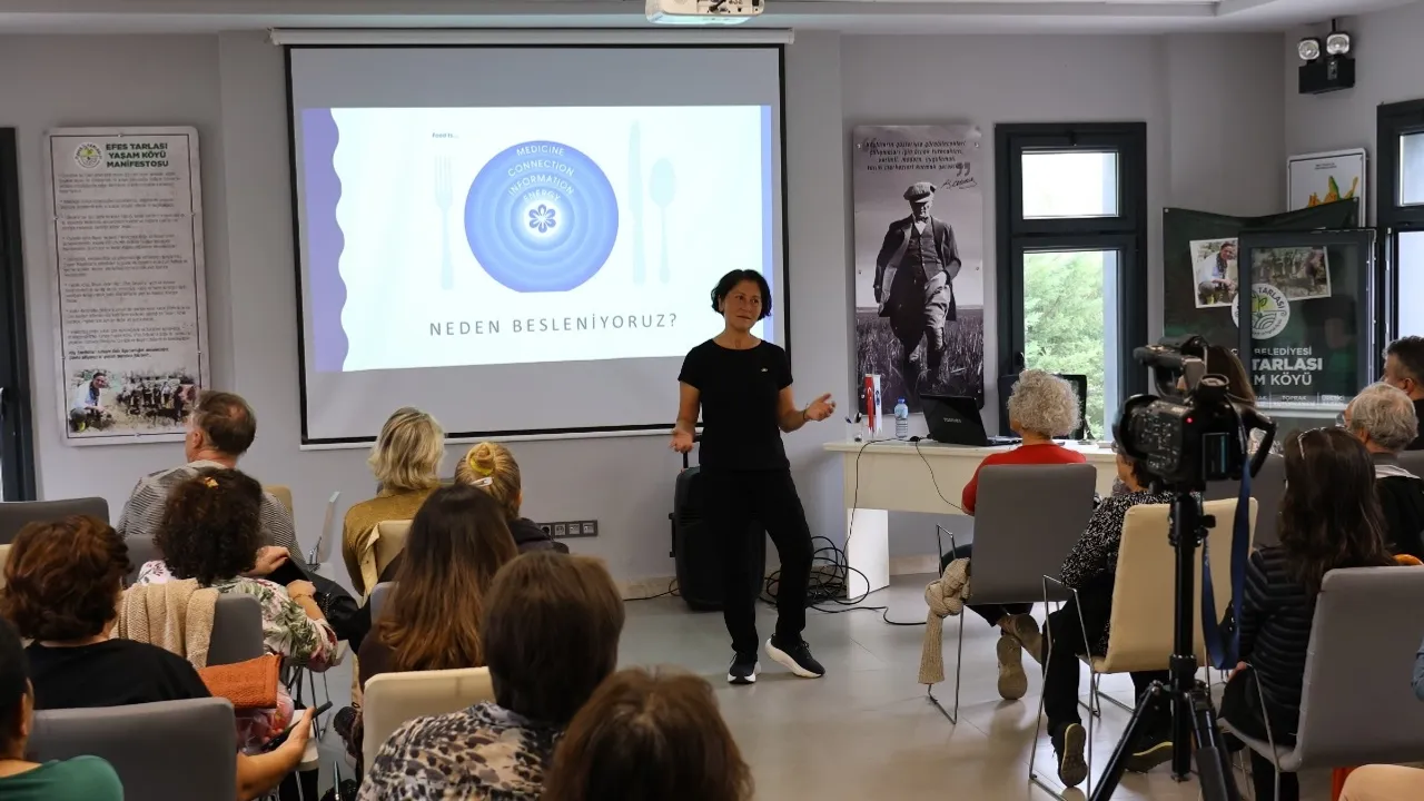 Efes Selçuk Belediyesi’nin ev sahipliğinde, Karaot Yerel Tohum Derneği iş birliği ile Prof. Dr. Nazan Uysal Harzadın’ın konuşmacı olarak katıldığı “Temiz Gıdalarla Fonksiyonel Beslenme” söyleşisi, Efes Tarlası Yaşam Köyü’nde yoğun katılımla gerçekleşti.