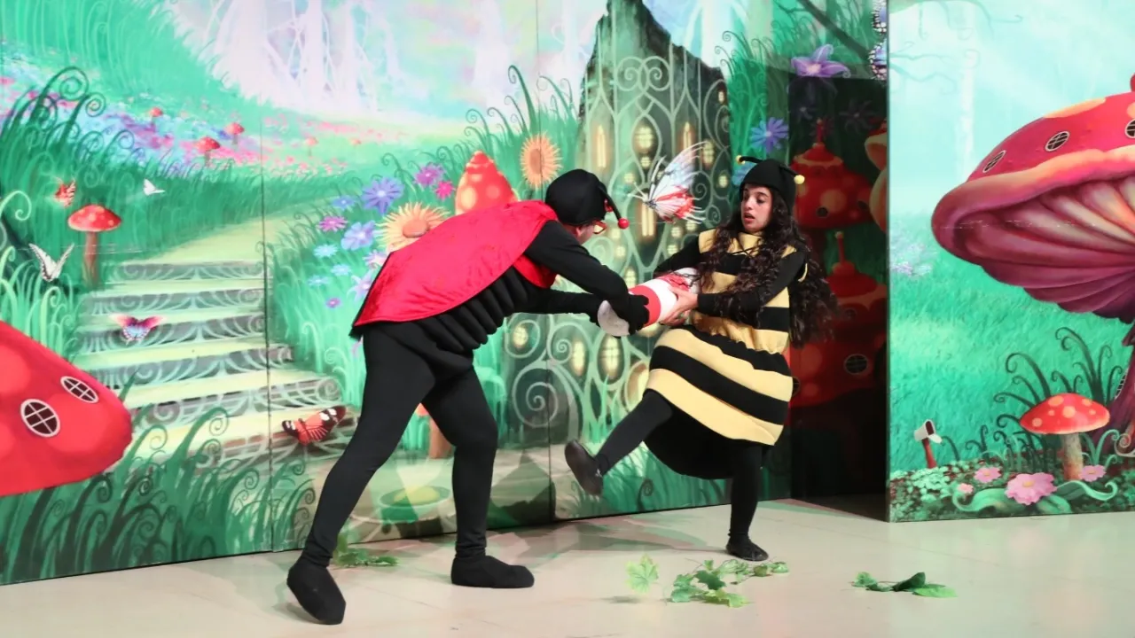 Renkli sahne dekorları ve eğlenceli hikayesiyle “Beneksiz Böcek Uğur” tiyatrosu, minik izleyicilerden tam not aldı.