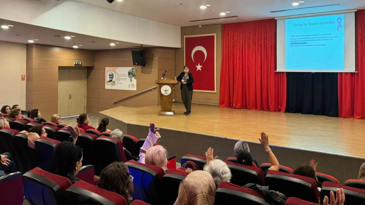 İzmir Çiğli Belediyesi, Meme Kanseri Farkındalık Ayı kapsamında kadınların bilinçlendirilmesine yönelik bir seminer düzenledi.İZMİR (İGFA) - Kadın ve Aile Hizmetleri Müdürlüğü tarafından organize edilen seminer, Fakir Baykurt Konferans Salonu’nda gerçekleştirildi.