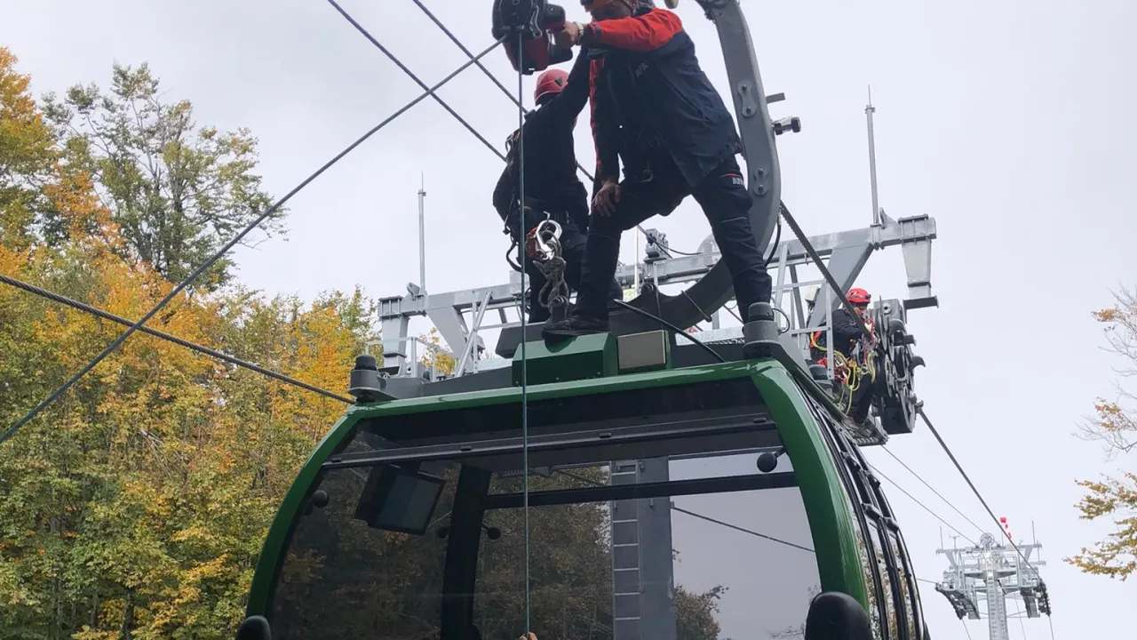 METRELERCE YÜKSEKLİKTE GERÇEKÇİ TATBİKAT Kuzuyayla İstasyonu’nda gerçekleştirilen tatbikat başarıyla tamamlandı. Senaryo gereği teleferik kabinleri iki direk arasında yolcularla birlikte durdu. Kurtarma ekipleri, taşıyıcı tellerden kabine ulaşarak gerekli güvenlik önlemlerini aldı ve kabin içindeki yolcuları başarıyla tahliye etti. Tatbikat, ekiplerin koordinasyon ve müdahale kabiliyetini test etti.