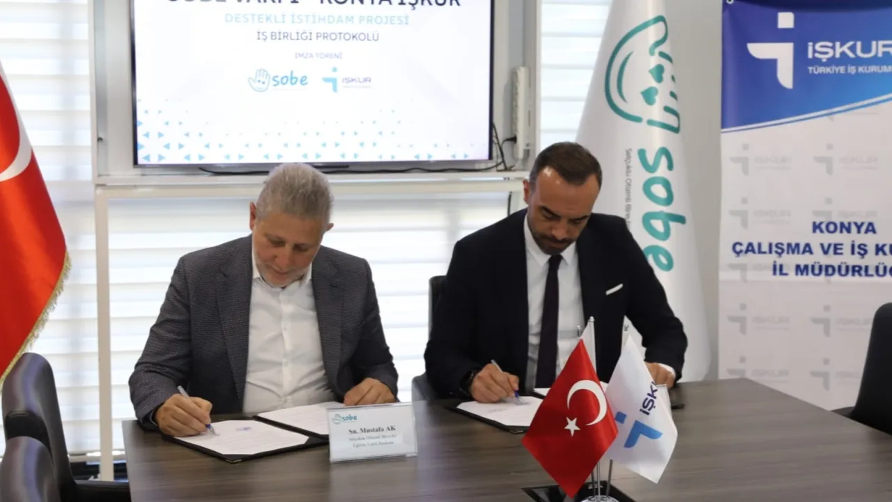Protokol töreni, Konya Çalışma ve İş Kurumu İl Müdürü Önder Çiftci ile SOBE Vakfı Başkanı Mustafa Ak’ın öncülüğünde gerçekleştirildi. İş birliği kapsamında, işverenlere; proje geliştirme, başvuru ve izleme-değerlendirme süreçlerinde rehberlik sağlanması bekleniyor.