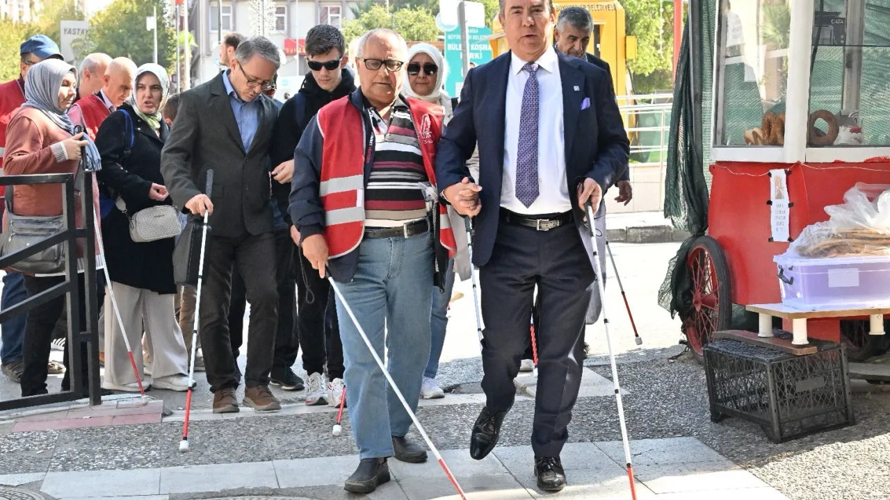 Manisa Büyükşehir Belediyesi ile Altı Nokta Körler Derneği Manisa Şubesi işbirliğinde 15 Ekim Dünya Beyaz Baston Güvenlik Günü dolayısıyla yürüyüş düzenlendi.MANİSA (İGFA) - Manisa Büyükşehir Belediyesi’nin destekleriyle Altı Nokta Körler Derneği işbirliği ile Dünya Beyaz Baston Güvenlik Günü’nde yürüyüş etkinliği düzenlendi. Görme engellilerin gündelik hayatta karşılaştıkları zorluklara yönelik farkındalık oluşturmak için düzenlenen yürüyüş etkinliği, ‘Engel Olma, Destek Ol!’ sloganıyla gerçekleştirildi. Yürüyüşte katılımcılara beyaz baston dağıtılarak yaşanan zorluklara yönelik empati oluşturulması hedeflendi. Cumhuriyet Meydanı’ndan başlayan yürüyüş etkinliği 15 Temmuz Demokrasi Meydanı’nda sona erdi. Yürüyüş sonunda Altı Nokta Körler Derneği Manisa Şube Başkanı Arif Zengin tarafından açıklama yapılarak, bildiriler dağıtıldı.