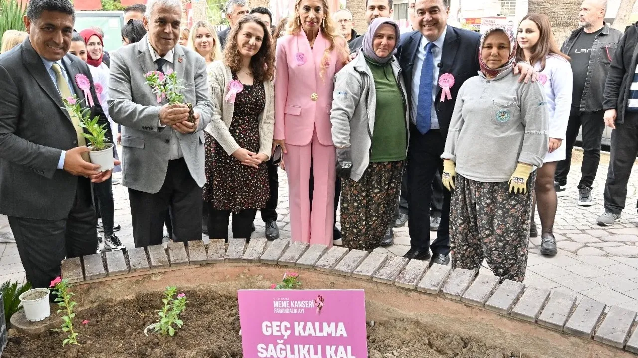 MEME KANSERİ SEMBOLÜ PEMBE ÇİÇEKLER EKİLDİ”