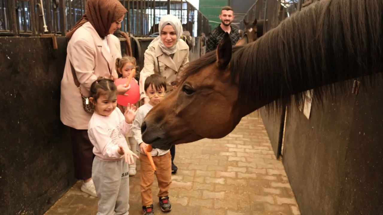 Çocuklar, etkinliğe öğretmenleriyle birlikte geldi. İlk olarak görevlilerden atların yaşamı, bakımı ve ihtiyaçları hakkında bilgi alan öğrenciler daha sonra ahırlara geçti. Burada yanlarında getirdikleri havuçları atlara veren minik öğrenciler, atları severek onlarla fotoğraf çektirdi.