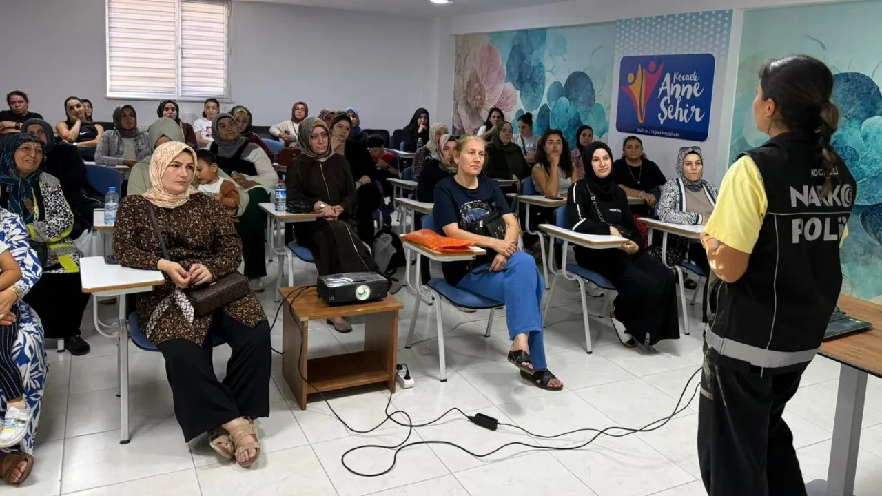 İçişleri Bakanlığı tarafından hayata geçirilen “En İyi Narkotik Polisi Anne Projesi” kapsamında Kocaelili kadınlara yönelik eğitim semineri düzenlendi. Büyükşehir Belediyesi’nin Anne Şehir Merkezlerine üye olan kadınlar, narkotik polislerinin anlattıklarını can kulağıyla dinledi.KOCAELİ (İGFA) - Kocaeli Büyükşehir Belediyesi ile Kocaeli İl Emniyet Müdürlüğü Narkotik Suçlarla Mücadele Şube Müdürlüğü iş birliğinde, Anne Şehir Merkezleri üyelerine “En İyi Narkotik Polisi: Anne” eğitimi verildi. Çocukların ve gençlerin uyuşturucu kullanımının önüne geçme konusunda anne duyarlılığından faydalanmak amacıyla hayata geçirilen proje kapsamında madde kullanımının nedenleri anlatıldı. Eğitimde; merak, arkadaş ısrarı, ailevi sorunlar ve kişisel problemler gibi madde kullanımına başlama sebepleri üzerinde duruldu. Uzmanlar, bağımlılığın yalnızca bireyi değil, tüm aileyi etkilediğini vurguladı.