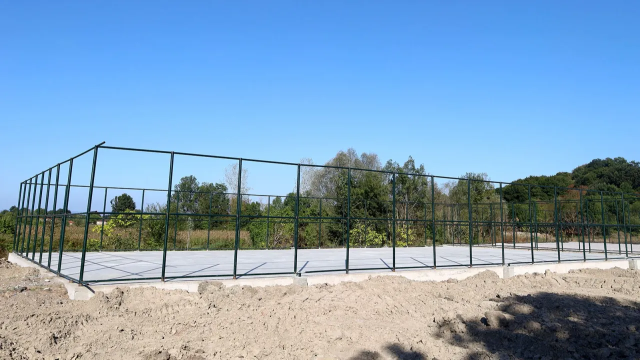 Alanı çevreleyecek demir profiller montajlandı, basketbol ve voleybol sahalarının beton imalatı tamamlandı, sentetik çimle kaplanacak futbol sahasında ise tesviye sürecine geçildi.